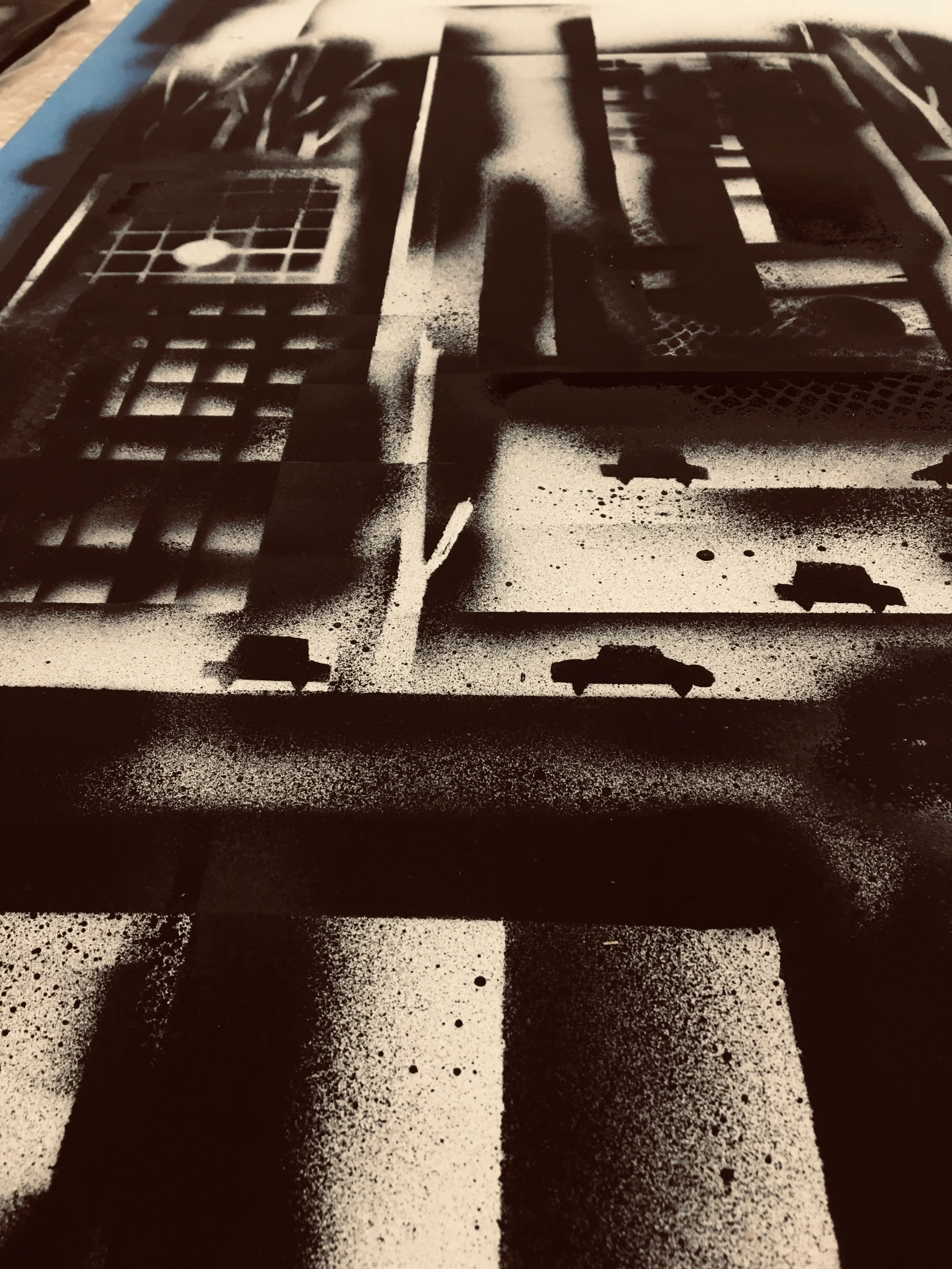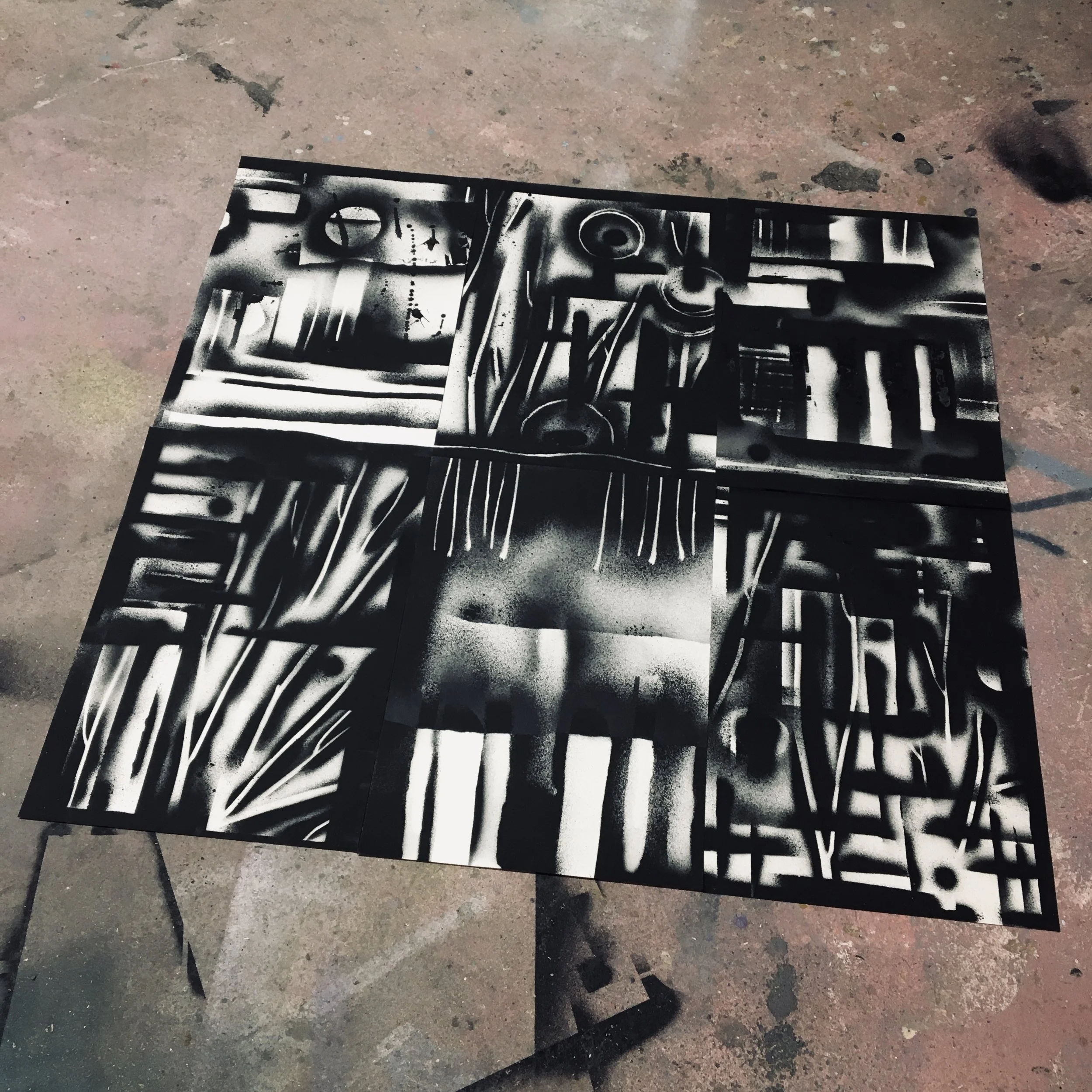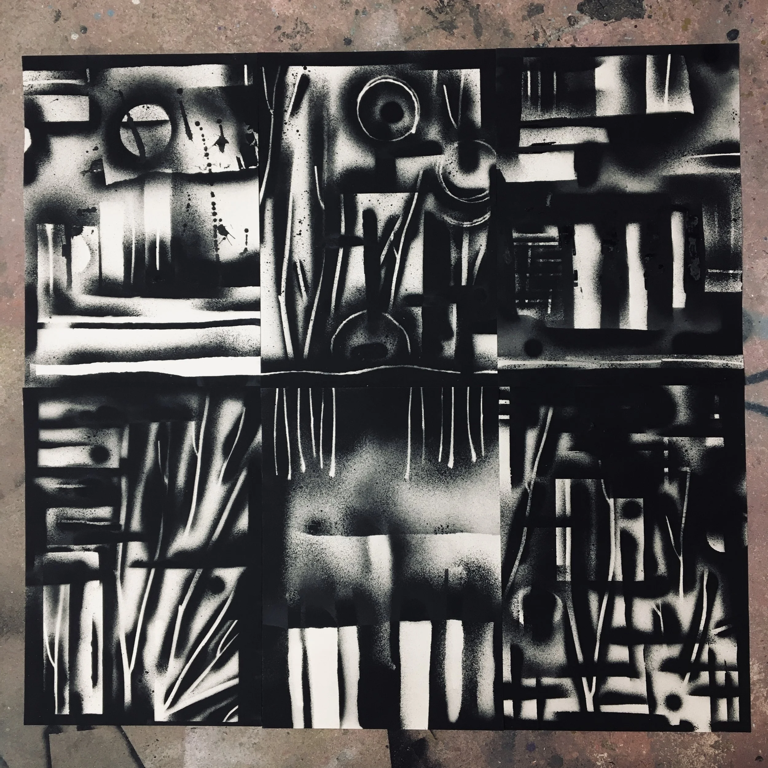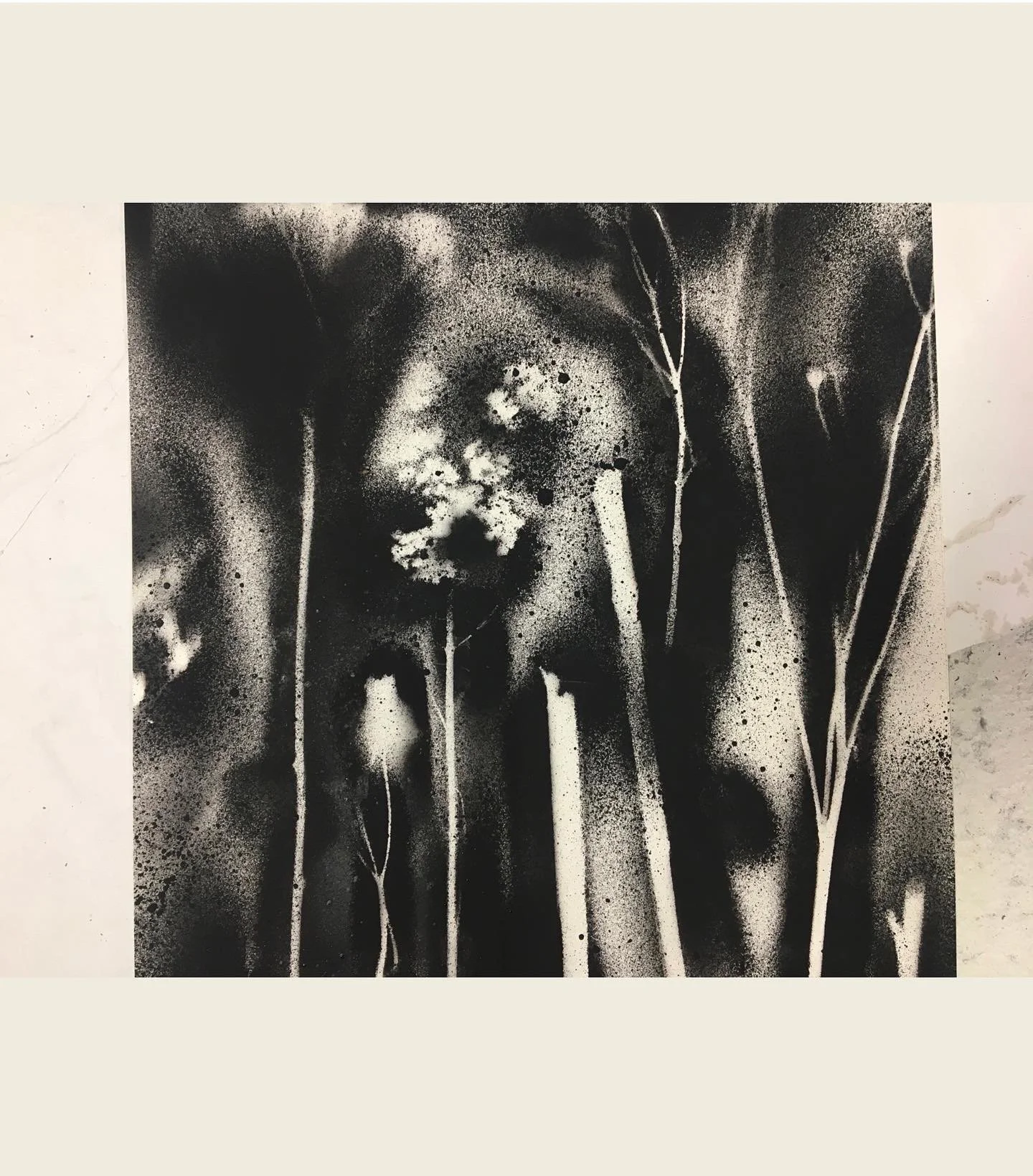 EMPREINTESExpérimentations plastiques. Végétaux et objets deviennent pochoirs et ombrages. Spray sur papier - 2022